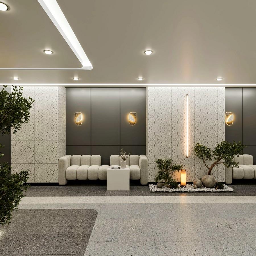 Klinik zemininde üç farklı tonda terazzo mermer tercih ettik. Bu mermerler, kliniğe zengin bir dokunuş ve görsel çekicilik sağlarken, aynı zamanda dayanıklılık ve kolay temizlenebilirlik gibi avantajlar sunar. Terazzo mermerin farklı tonları, kliniğin ambiyansına derinlik ve hareketlilik katarak, sade ve zarif bir atmosfer oluşturur.